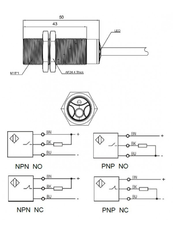 Sensor indutivo faceado fator 1 – MS-LR18XBF08DPOU