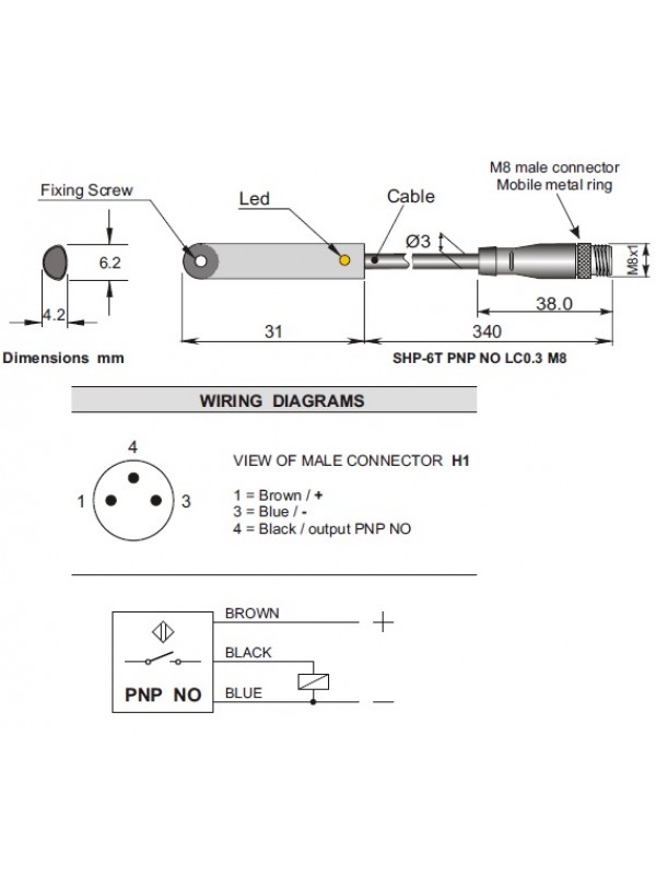 Sensor Magnético #SEH000011 SHP-6T-PNP-NO-0,3-M8