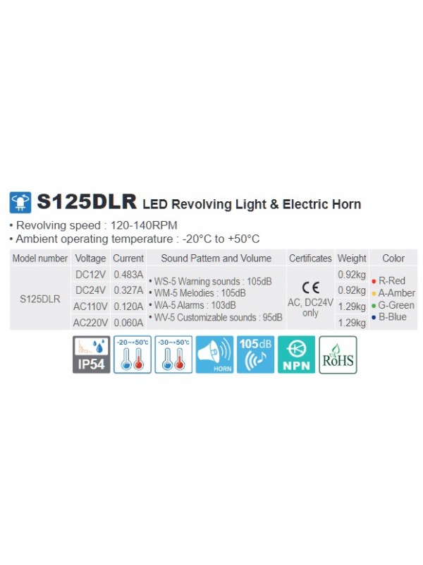 Sinaleiro LED com sonoro 5 tipos S125DLR-WS-24-R